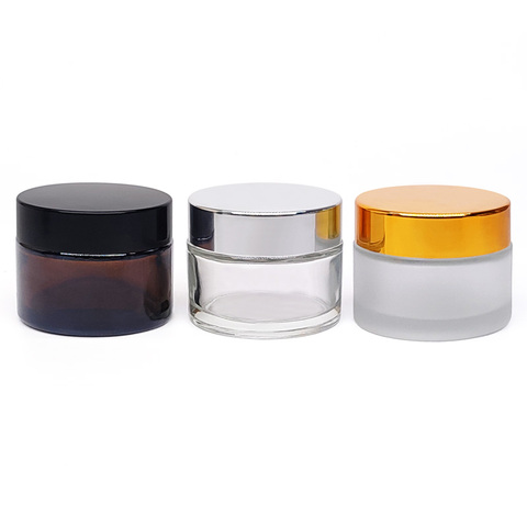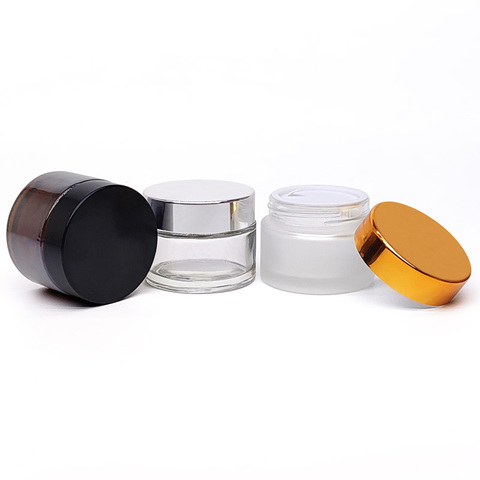 Botol kaca kemasan kosmetik kualitas tinggi 50g dengan penutup hitam plastik untuk krim wajah tubuh dijual